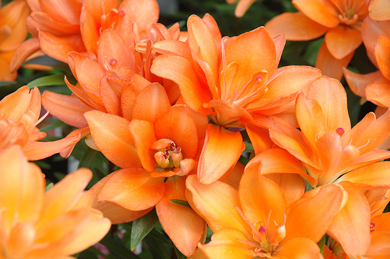 Lily Looks™ Tiny Double You Lily features bold double orange trumpet-shaped flowers at the ends of the stems in early summer. The flowers are excellent for cutting. Its narrow leaves remain green in color throughout the season.
