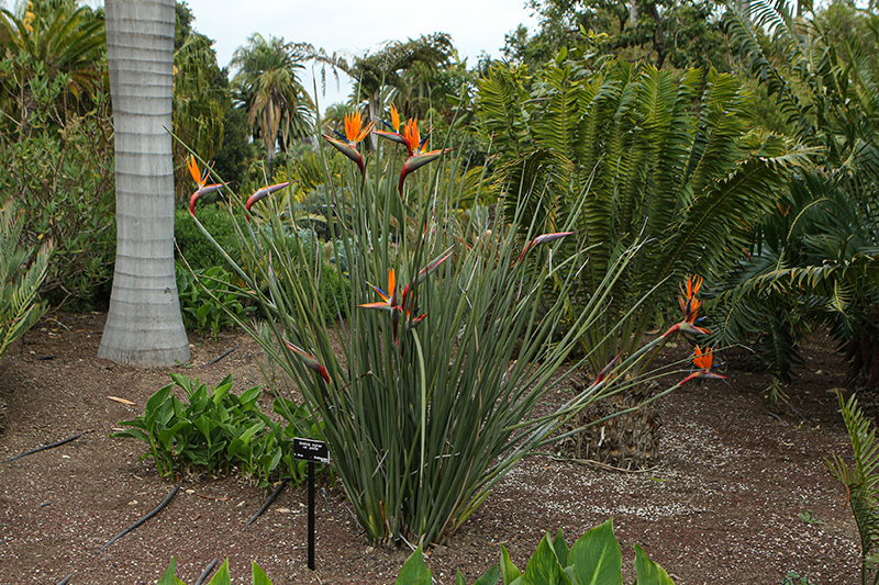 Narrow-leafed Bird Of Paradise features bold spikes of orange flowers with blue overtones rising above the foliage from late fall to late spring. The flowers are excellent for cutting. Its attractive narrow leaves remain bluish-green in color throughout the year.