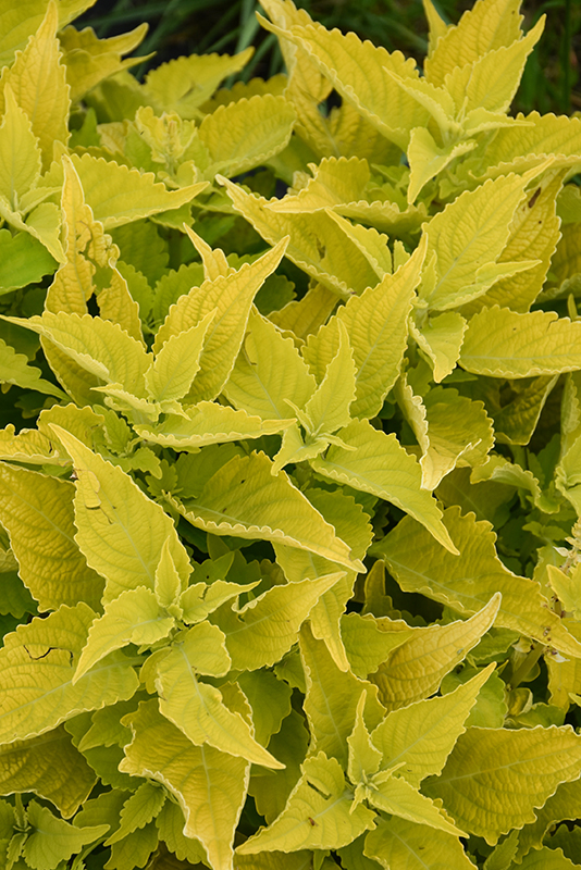 ColorBlaze® Lime Time™ Coleus' attractive serrated pointy leaves remain chartreuse in color throughout the year on a plant with an upright spreading habit of growth.