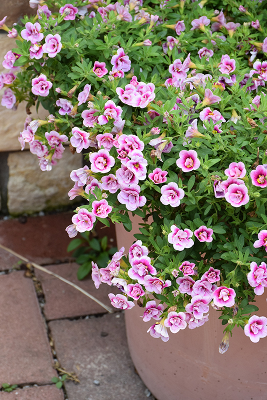 Superbells® Double Smitten™ Pink Calibrachoa is a fine choice for the garden, but it is also a good selection for planting in outdoor containers and hanging baskets. Because of its trailing habit of growth, it is ideally suited for use as a 'spiller' in the 'spiller-thriller-filler' container combination; plant it near the edges where it can spill gracefully over the pot. Note that when growing plants in outdoor containers and baskets, they may require more frequent waterings than they would in the yard or garden.