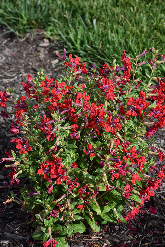 Small, well branched shrub or subshrub presents unusual watermelon-red tubular flowers with purple calyces; great for bedding, shrub borders, and containers; continuous blooming from spring to fall; great for attracting pollinators; self-cleaning